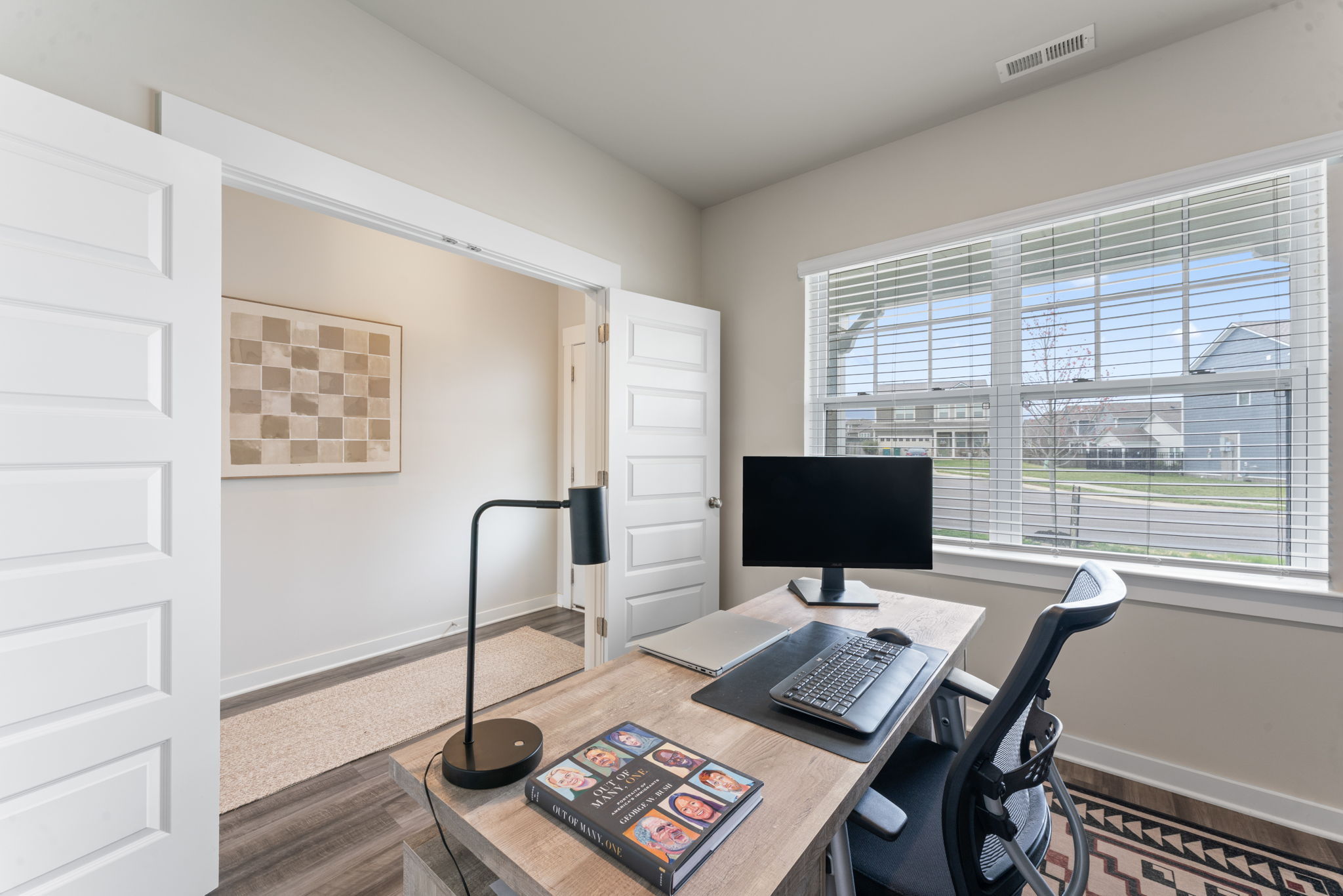This flexible area serves as a home office allowing you to keep work and life separate. Not working from home? This could be the perfect homeschool room, craft room, or even bourbon room accommodating whatever hobby you have. The room maintains the home's signature wood flooring, clean design, and has plenty of natural light!